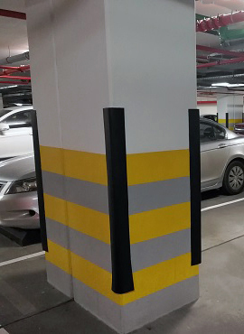 Ramp area Heavy duty two layers of wall guard will be applied same like Round column installation Wall protectors prevent damage to both vehicles and buildings. Garage wall protectors are a perfect solution onto residential garages for easy car parking. Wall guards protect interior walls, corners and columns in factories, warehouses and loading docks. Designed to absorb, deflect and minimize wear, abrasion and impact from wheeled traffic.